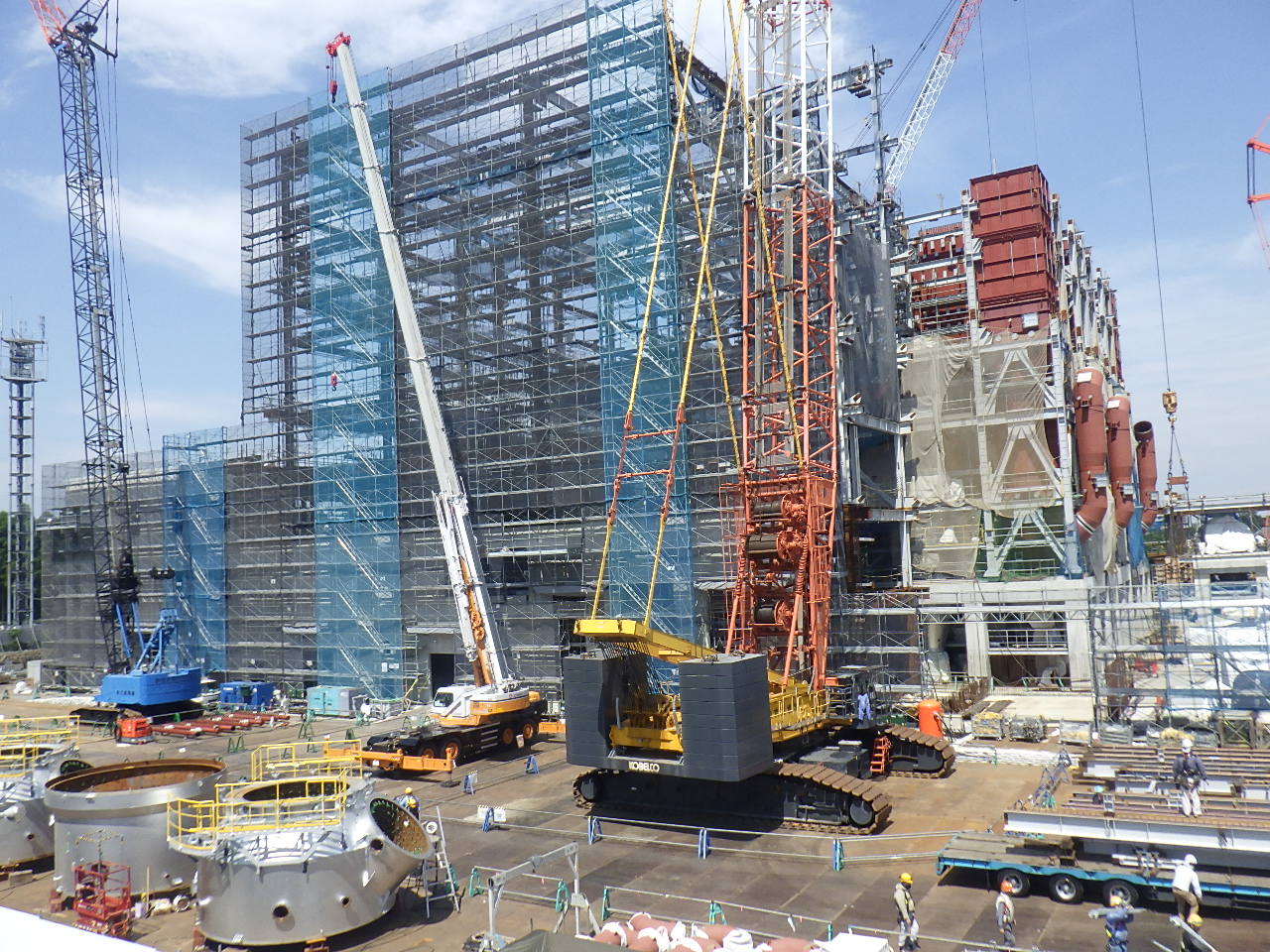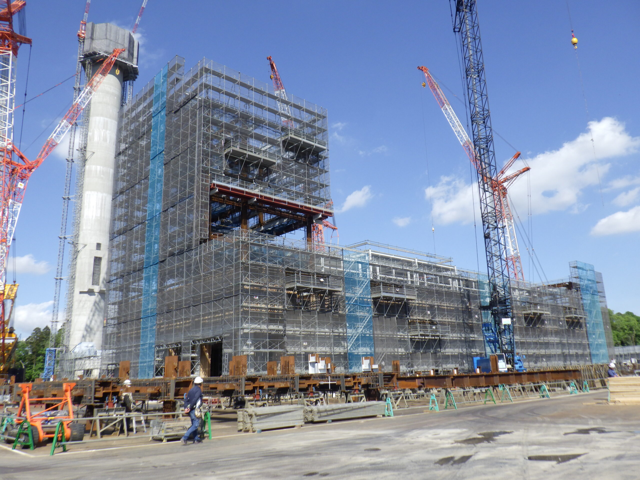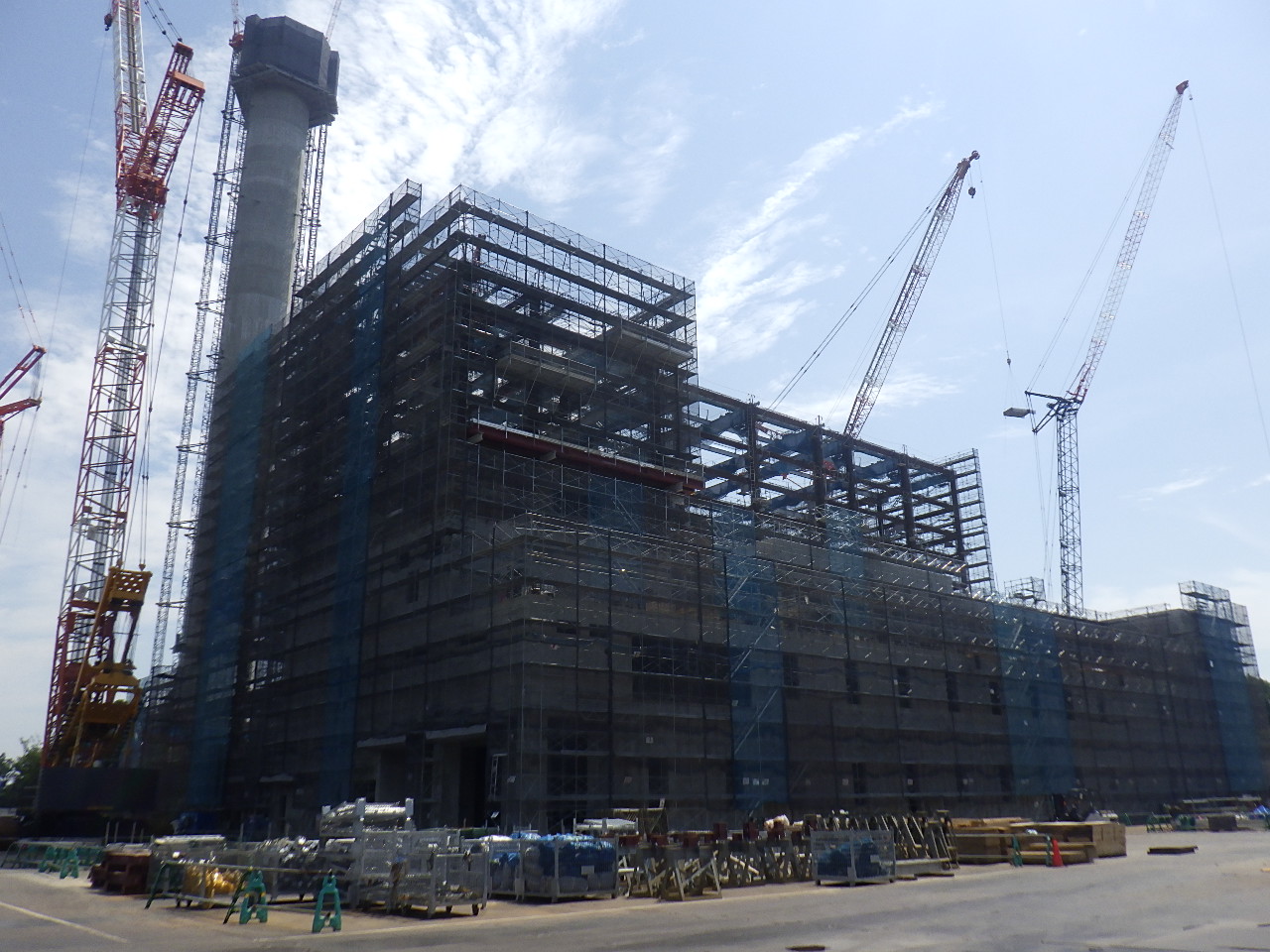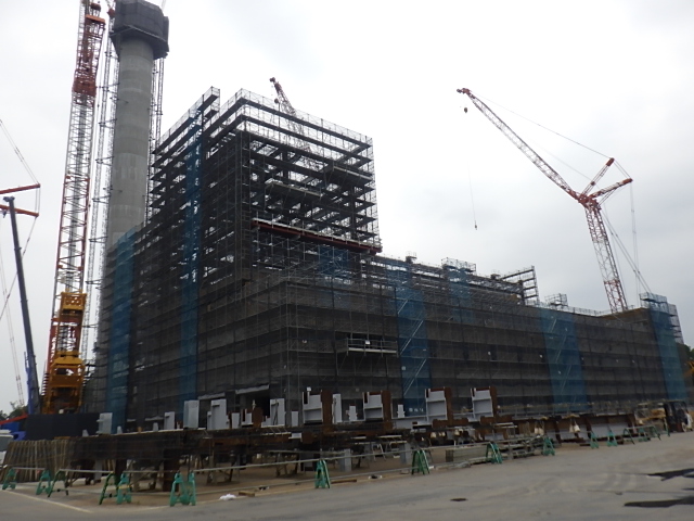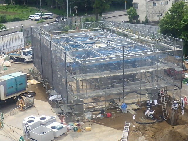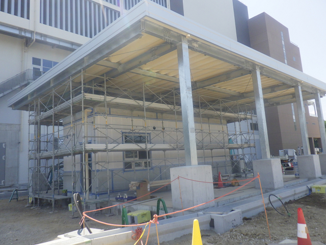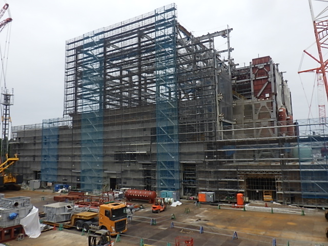 7月31日 工場棟外部足場組立状況