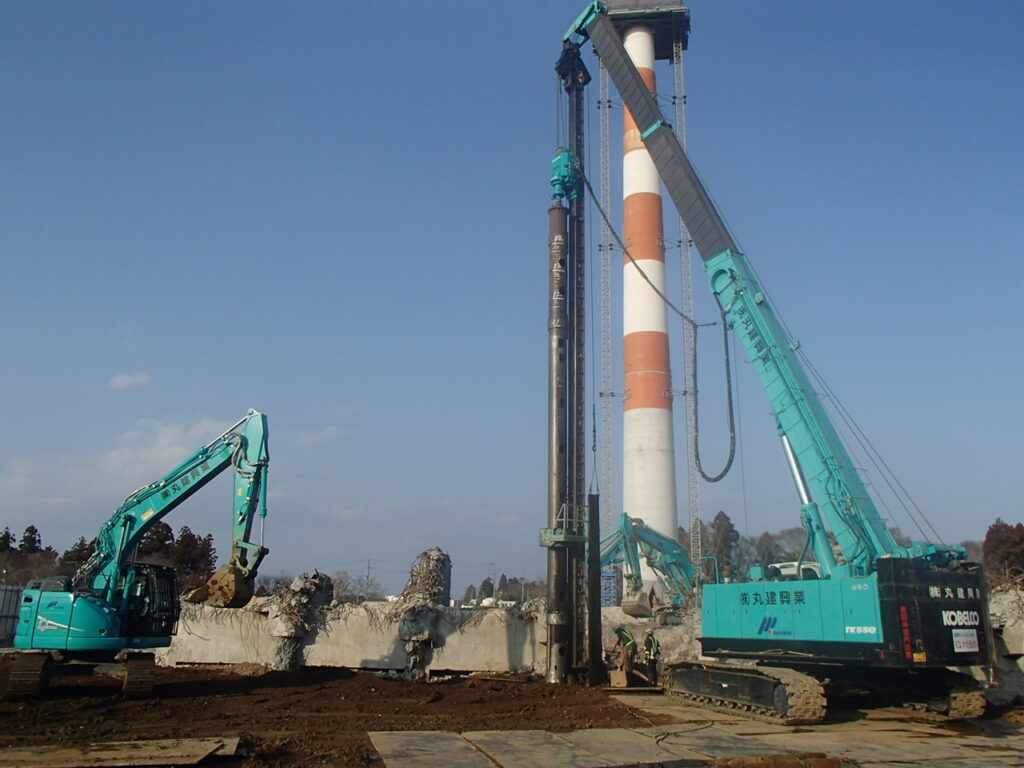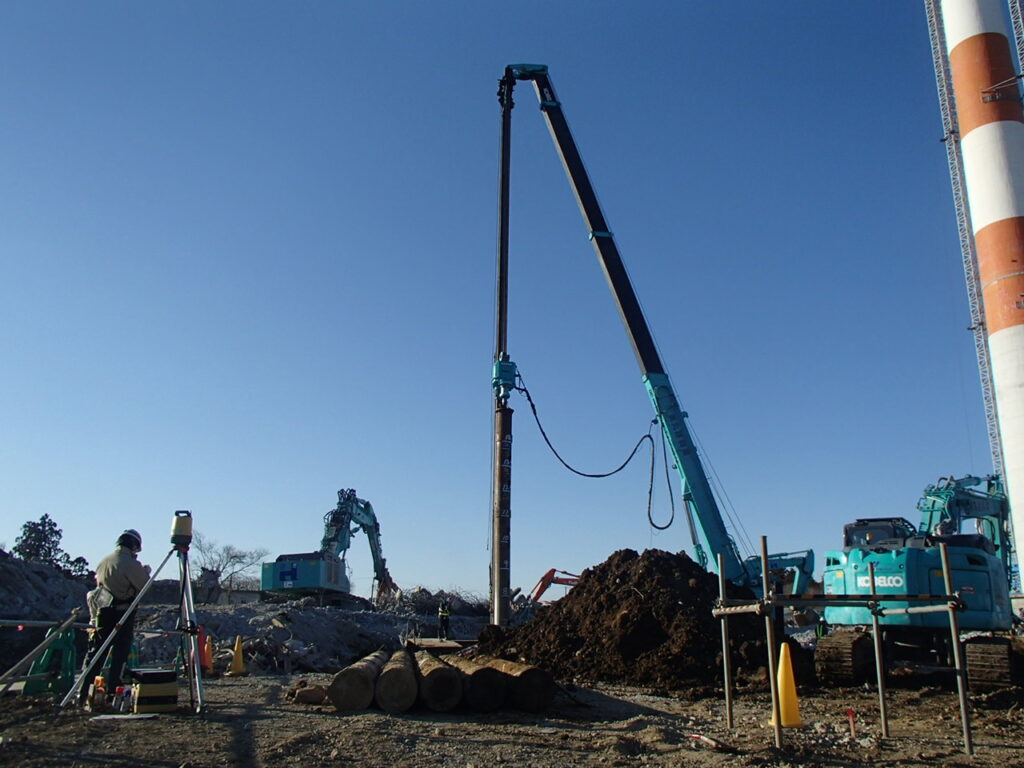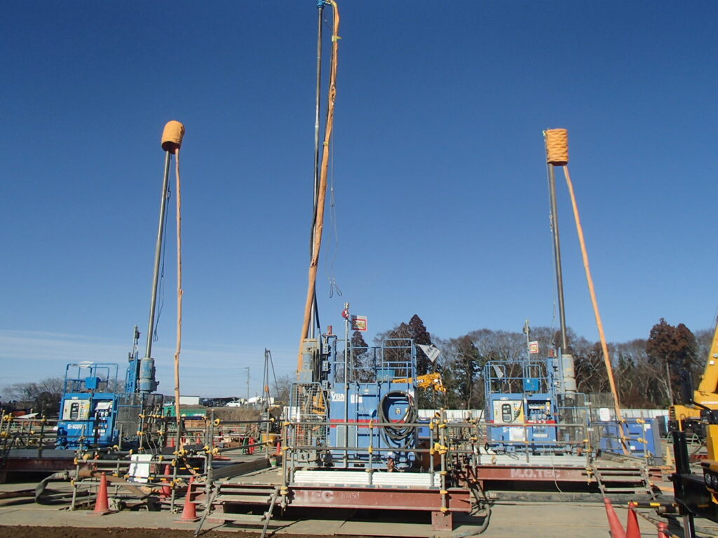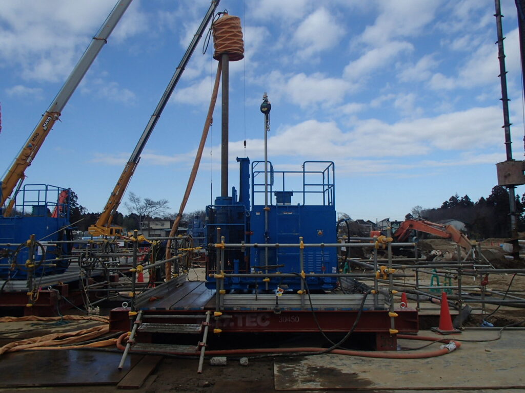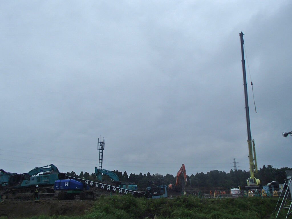 3月17日 工場棟プラットフォームエリアPC杭引抜作業状況