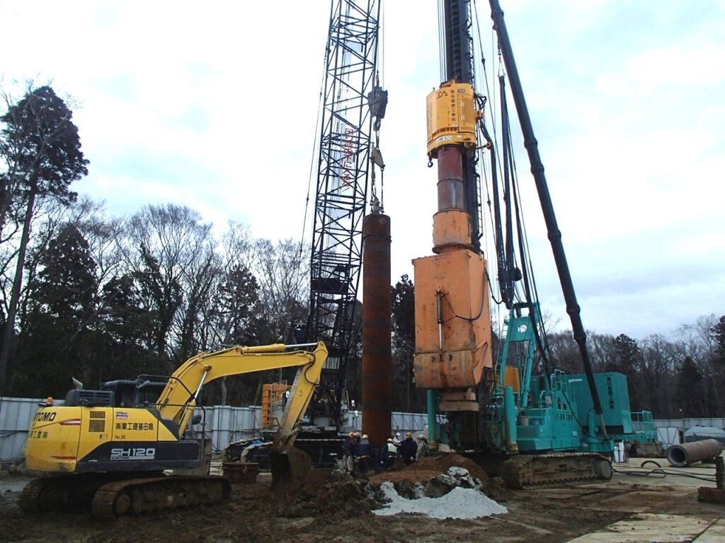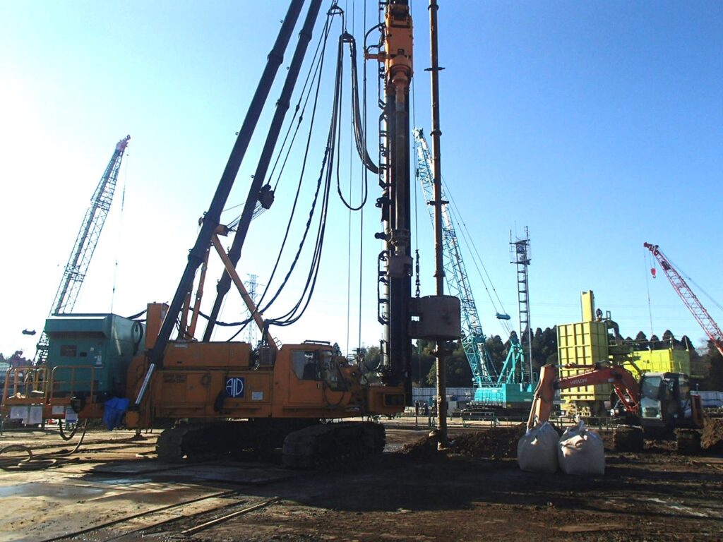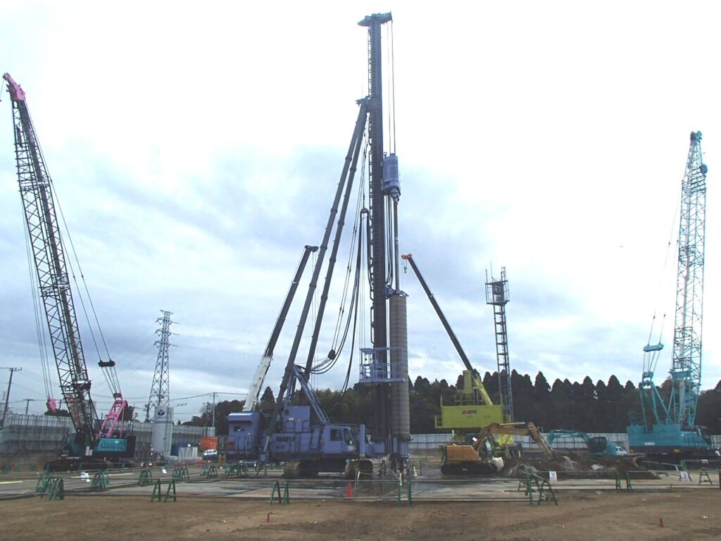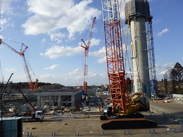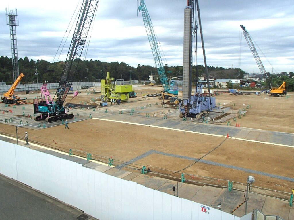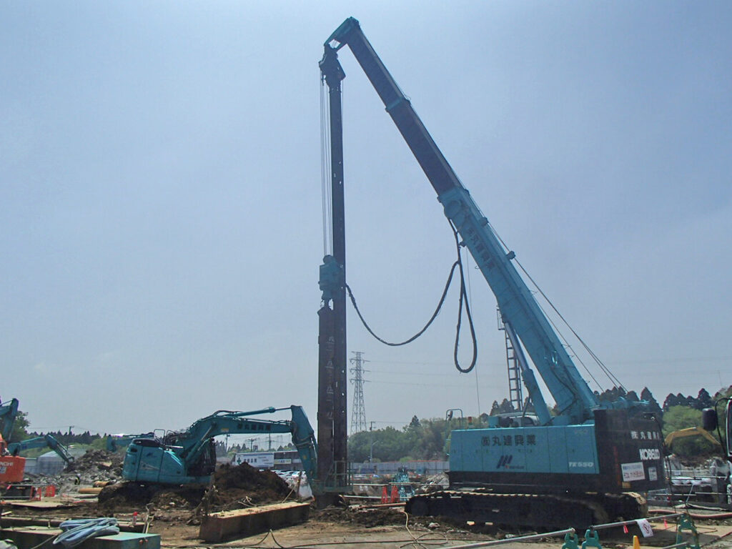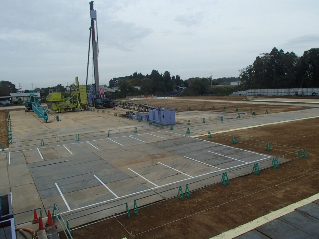 3月17日 工場棟プラットフォームエリアPC杭引抜作業状況