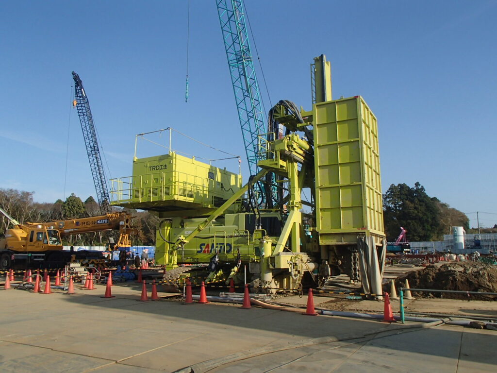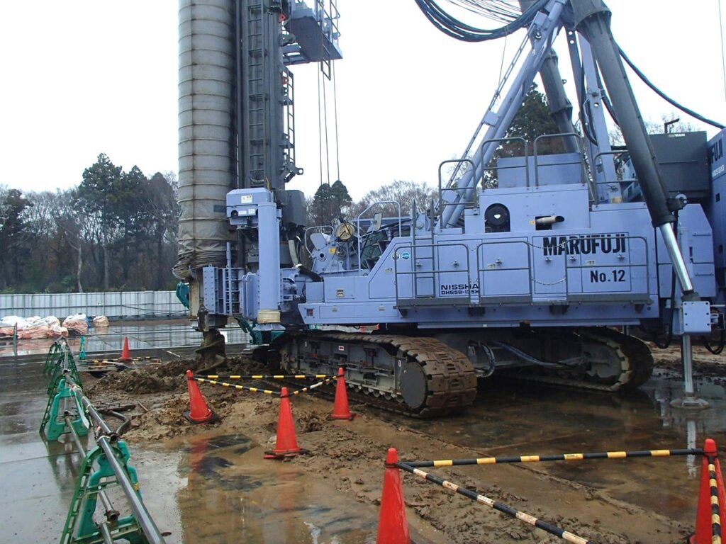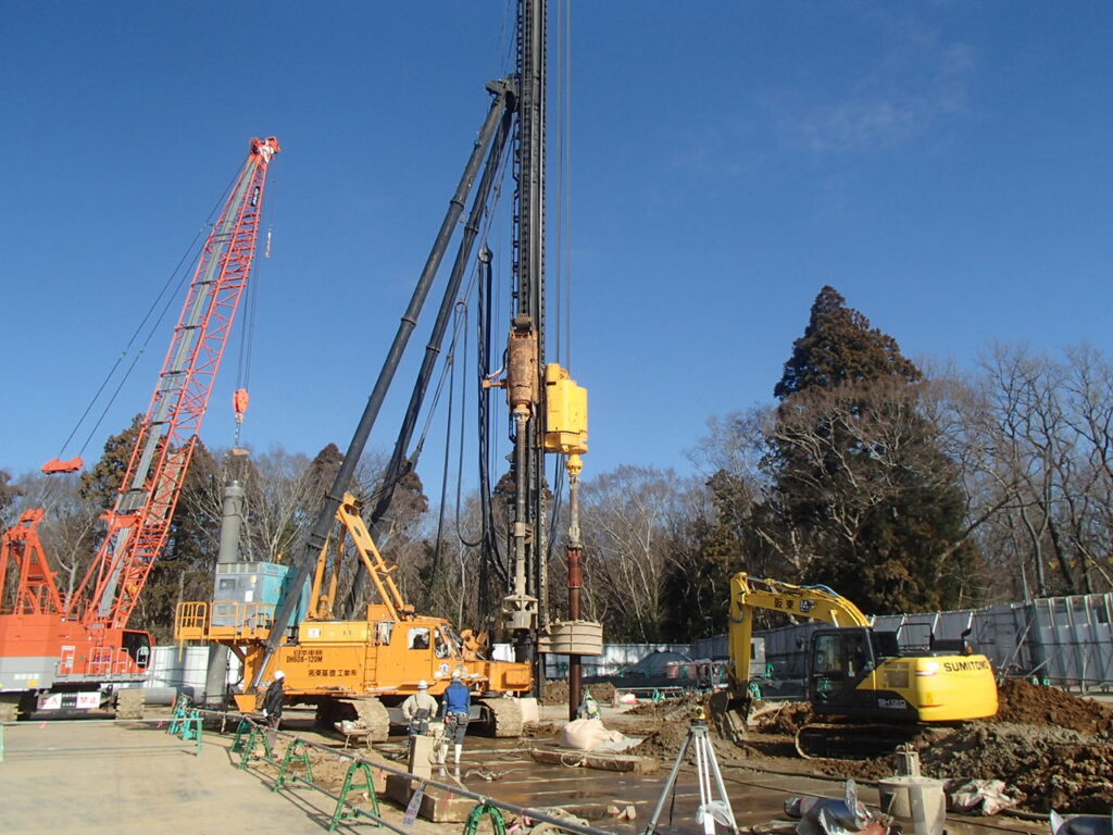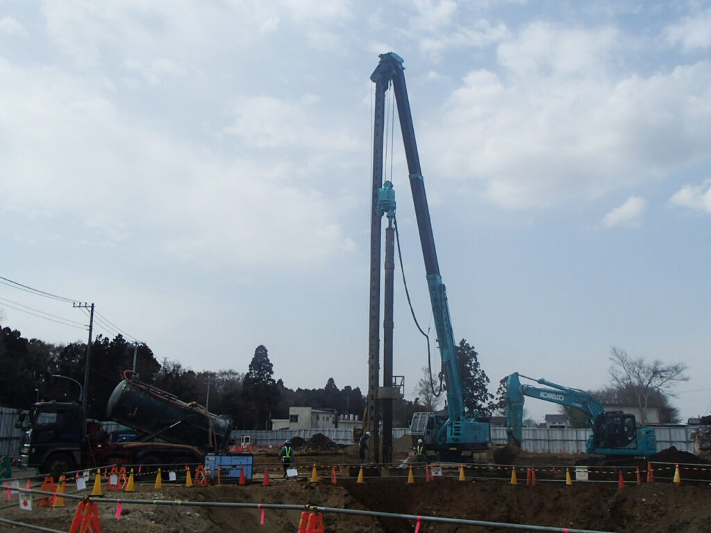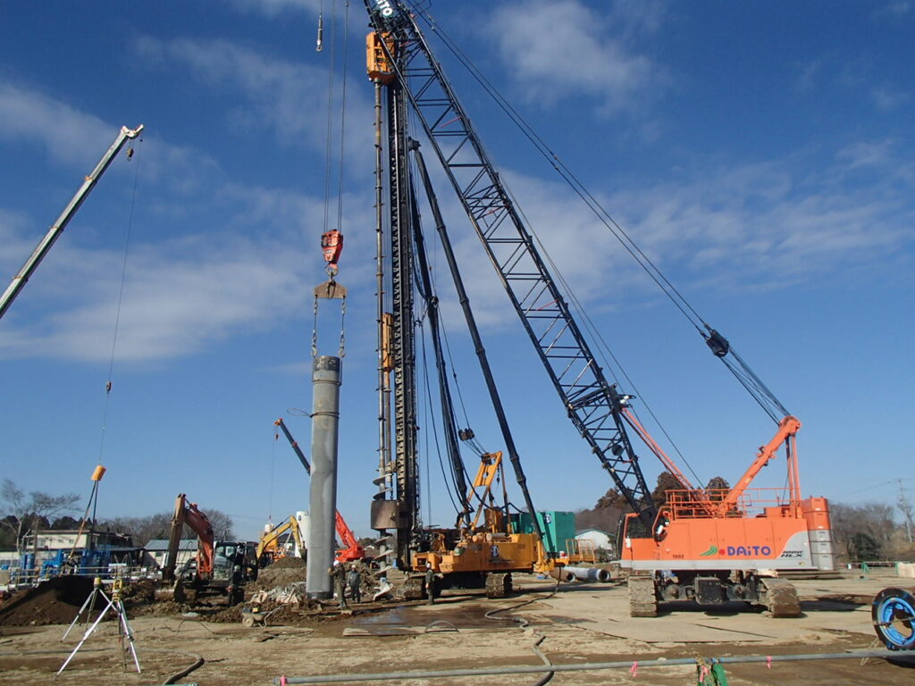 3月17日 工場棟プラットフォームエリアPC杭引抜作業状況