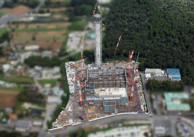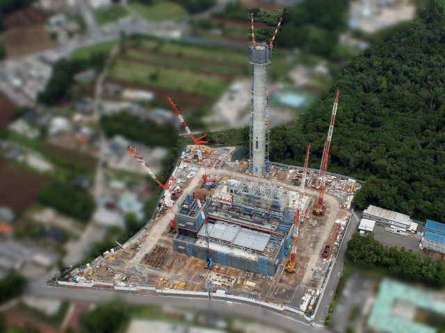 4月26日 煙突筒身解体進捗状況(全体)