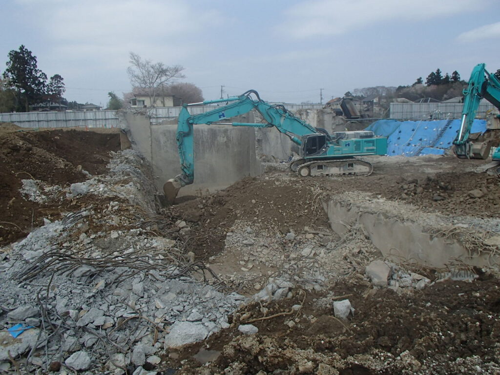4月7日 工場棟地下躯体解体状況
