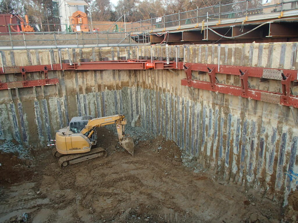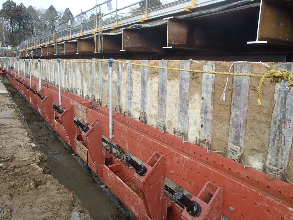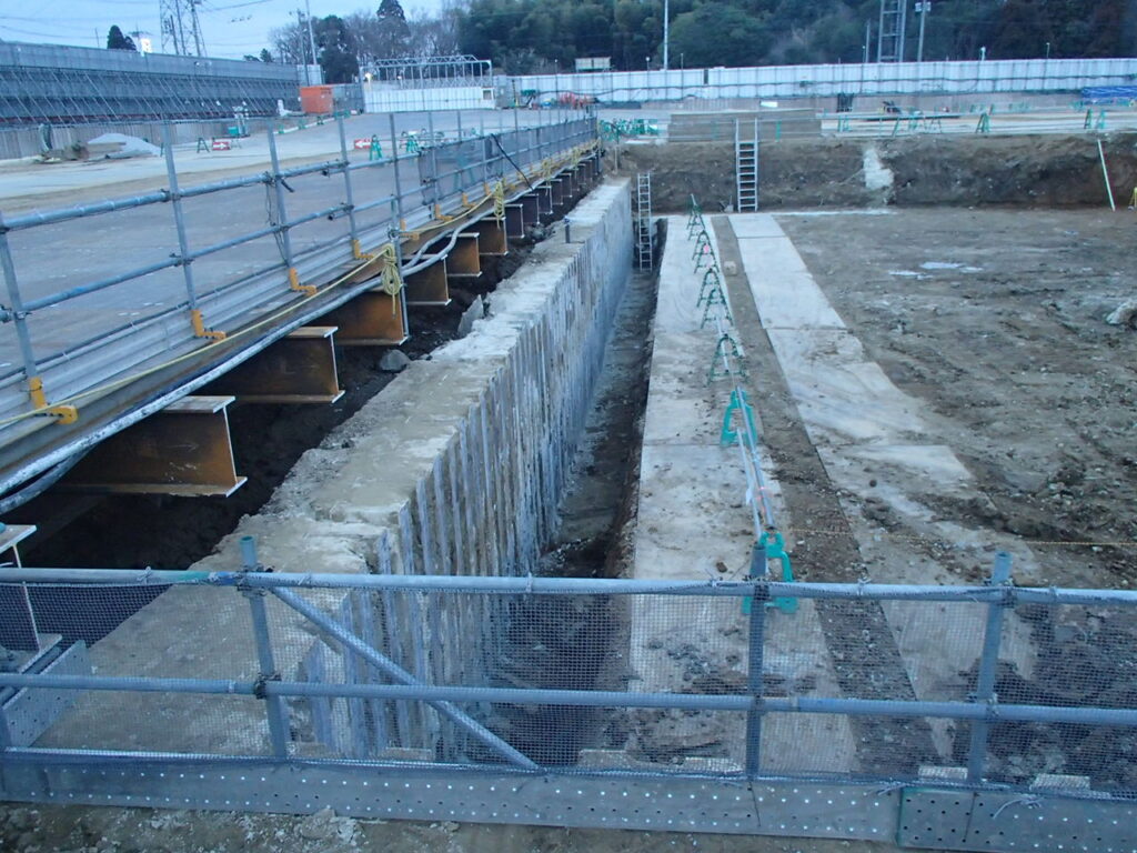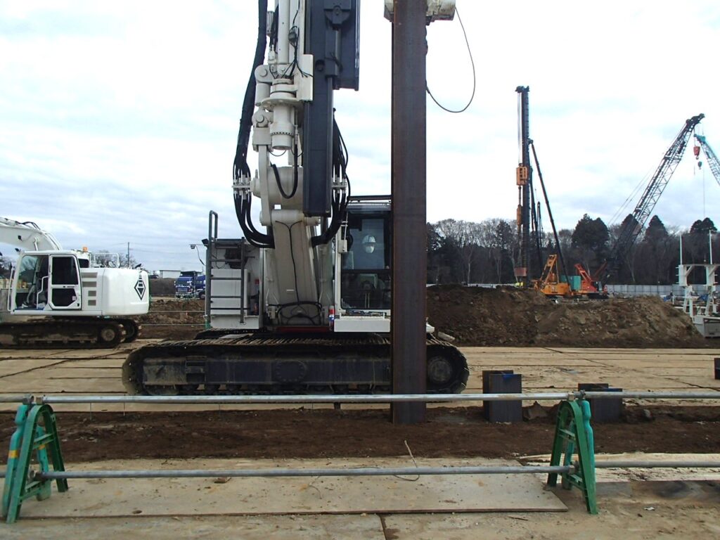 3月10日 工場棟プラットフォームエリア地中障害H鋼引抜作業状況