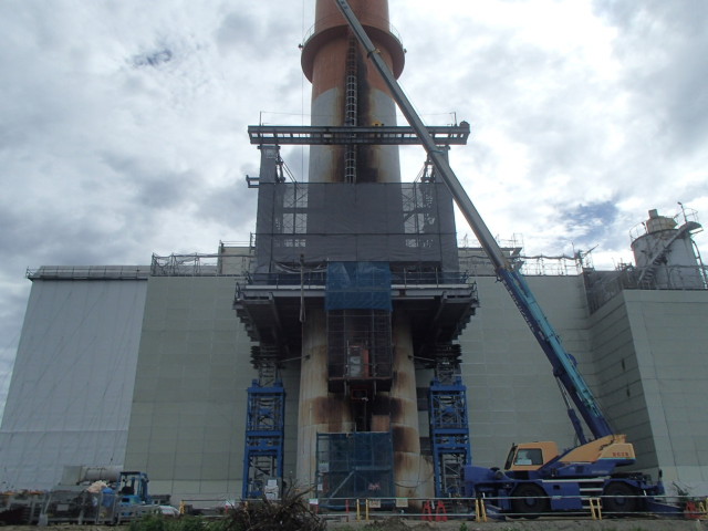 4月21日 煙突筒身解体施工状況