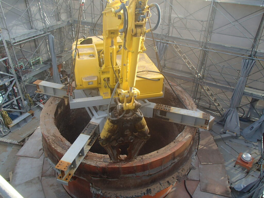 11月17日 煙突内筒レンガ解体状況