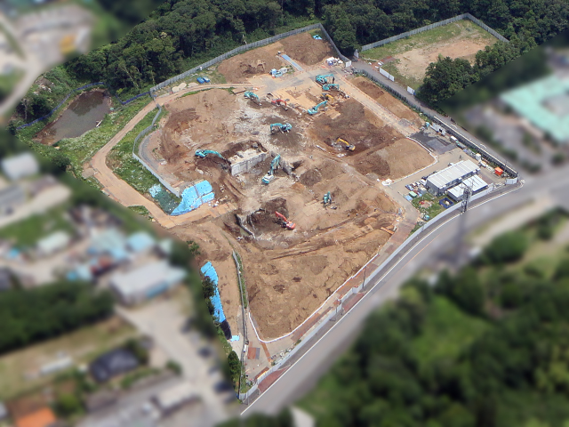 7月9日 管理棟 基礎解体完了後整地完了状況